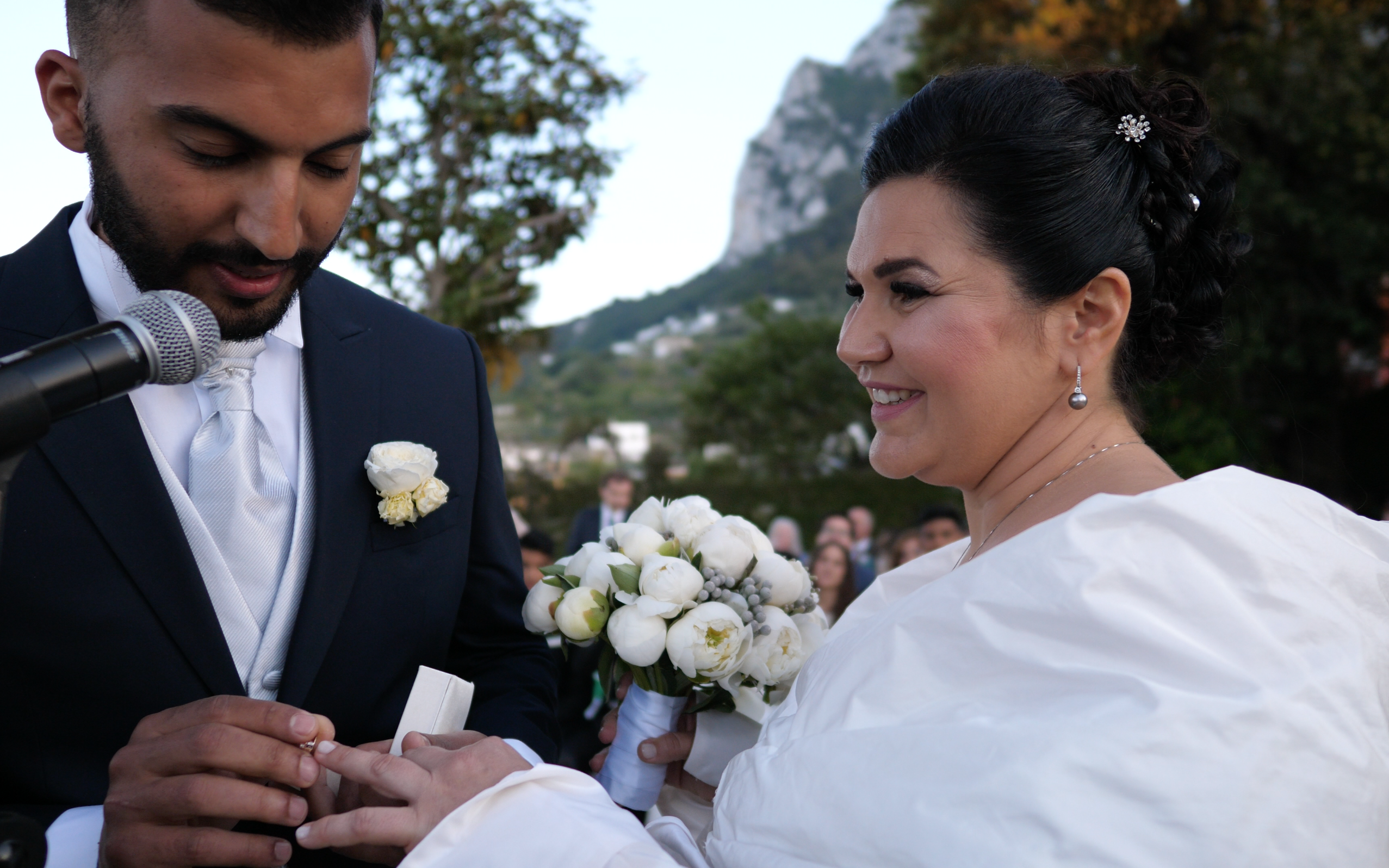 Francesca e samir hanno coronato il loro sogno d’amore nello splendido scenario caprese con panorama mozzafiato sul golfo di Napoli.