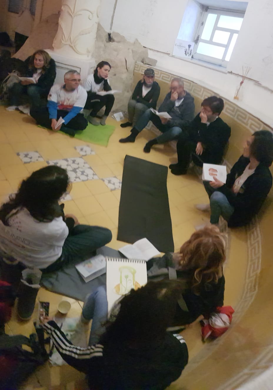 A Villa Lysis, nella ” Sala dell’ Oppio “, corso di riflessologia plantare … ed intanto, una pittrice, in un angolo, con delle tinte acquerello, favorevolmente ispirata, dipingeva ..