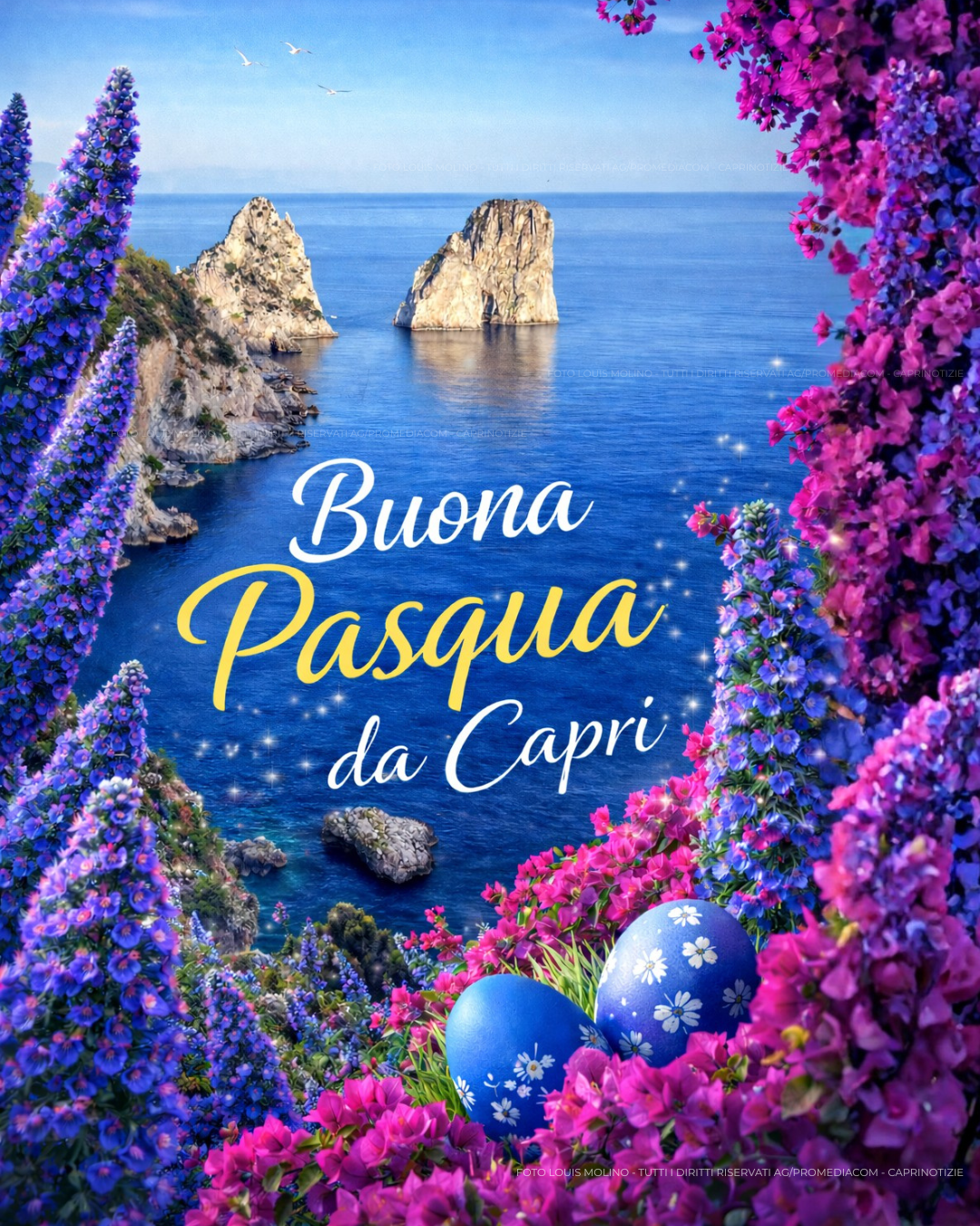 Buona Pasqua da Capri: Anche quest’anno, dalla splendida isola di Capri, la nostra redazione vi invia un pensiero speciale: i più sinceri auguri di una Pasqua serena, luminosa e piena di gioia.