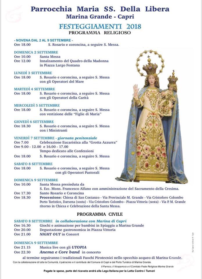 Capri. Festeggiamenti in onore della Madonna della Libera 2018 ( PROGRAMMA FESTEGGIAMENTI) ultima modifica: 2018-09-01T09:56:28+02:00 da