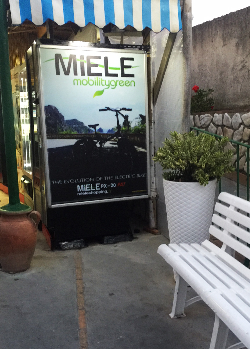 Il famoso brand di Biciclette elettriche taglia il nastro rosso dei nuovi impianti pubblicitari, La Miele da sempre si é rivola per la pubblicità e il marketing all’agenzia Promediacom- Publicapri e all’isola di Capri come location privilegiata per i propri spot pubblicitari.