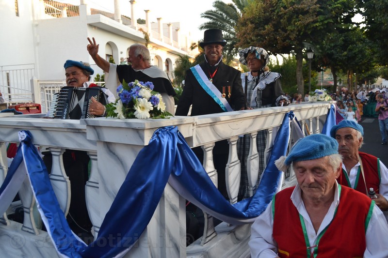la sfilata di apertura con più di trecento figuranti in costume storico, come ogni anno realizzati a mano per l’evento, festeggia i novant’anni della nascita della manifestazione con un omaggio alle caratteristiche storiche del evento ideato come “festa dell’uva” da intellettuali come Napolitano, Cerio, Marinetti nel giardino dell’Eden Paradiso con carri, musica e tanta … uvaOre 21.30 – Piazza San Nicola – Omaggio al folklore Gruppo Folk Isola di Capri. Le più belle canzoni napoletane, la magia della tarantella