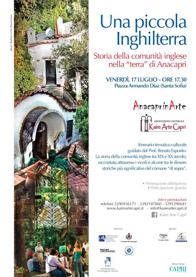 Venerdì 17 Luglio alle ore 17:30 Piazza Armando Diaz Anacapri itinerario tematico culturale organizzato da Kaire Arte Capri e guidato dal Prof. Renato Esposito.